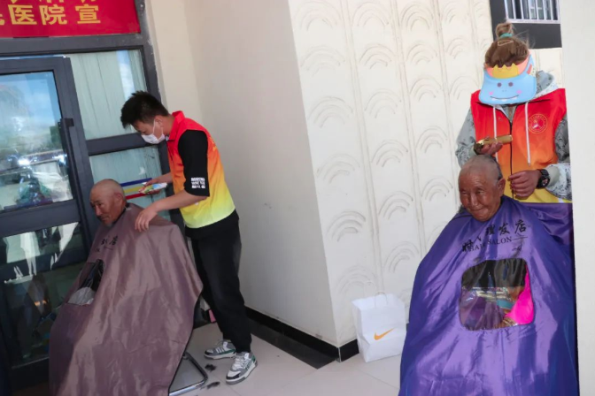 义诊义剪志愿者们为老人们进行健康义诊,义务测量血糖、血压,针对每位老人的检查结果提出了具体的日常生活护理建议,并为就诊者发放了共计30余种、价值4000元左右的各类常用药品。理发师们免费给老人们理发,他们娴熟的技术和周到的服务赢得了老人们的热情夸赞。