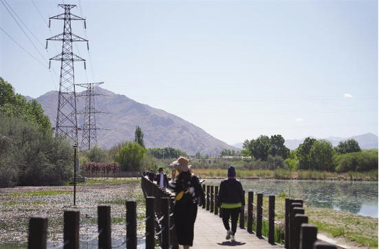“走进拉鲁湿地,生机勃勃的盎然绿意、层次分明的景色让人心旷神怡。远处,连绵起伏的山顶还覆盖着薄薄的积雪,布达拉宫美轮美奂;近处,湿地内的一块块水泊,成群的候鸟在水中玩耍嬉戏、在蓝天白云下飞翔。”游客王芳说,“我和家人刚来拉萨,听朋友说拉鲁湿地已经开放,就想来打卡,也是第一次来拉鲁湿地,这儿的空气湿度适宜,在拉鲁湿地运动,不仅能享受运动带来的快乐,还能欣赏怡人景色。”